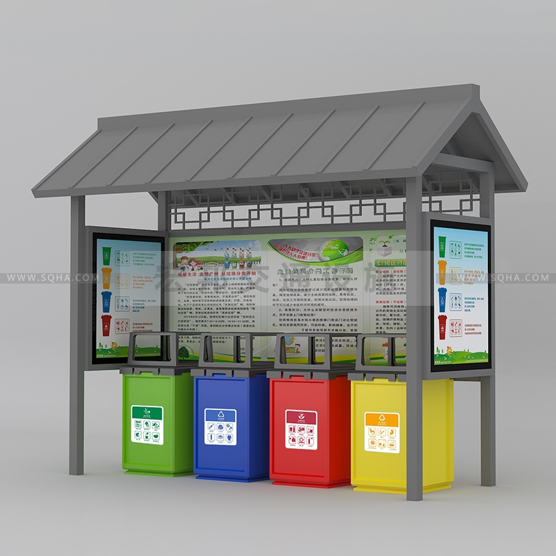 那么垃圾分類亭有什么優(yōu)點(diǎn)呢?4、垃圾分類亭可開啟換畫面,前透明板材是耐力板,透明度高,耐勞防碎,不傷人,安全有保障。